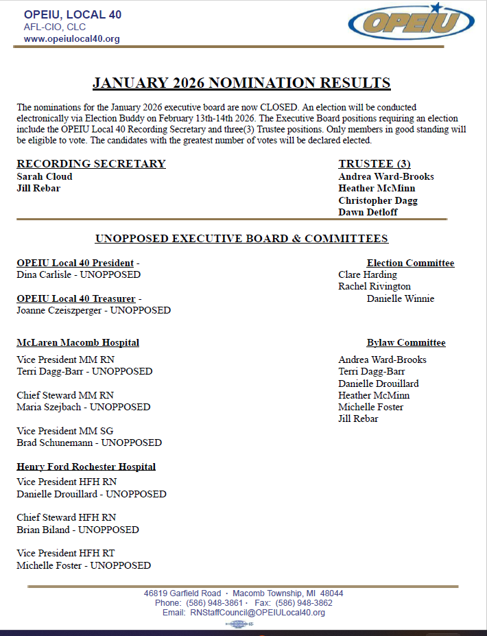 01/29/26 - RN Staff Council, OPEIU, Local 40, AFL-CIO, CLC